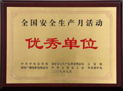 集团公司被中共中央宣传部、国家安全生产监督管理总局等七部委授予“全国安全生产月活动优秀组织单位”称号;