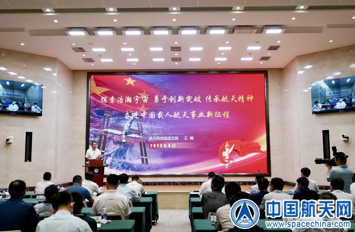 会上,集团公司五院空间站系统总指挥王翔以《探索浩瀚宇宙、勇于创新突破、传承航天精神,奋进中国载人航天事业新征程》为题,围绕党中央领导中国载人航天事业谱写壮美篇章、中国特色的空间站组装建造之路、奋进中国载人航天事业新征程等3个方面,回顾了在党中央的坚强领导下特别是在习近平总书记的亲切关怀下,我国载人航天工程所取得的重大成果,讲述了中国空间站的研制历程和建造情况,以及中国载人航天事业的发展前景。