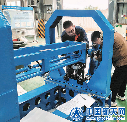 图为四院401所西诺美灵公司第三事业部员工正在安装调试发动机试验架。彭珍妮 摄
