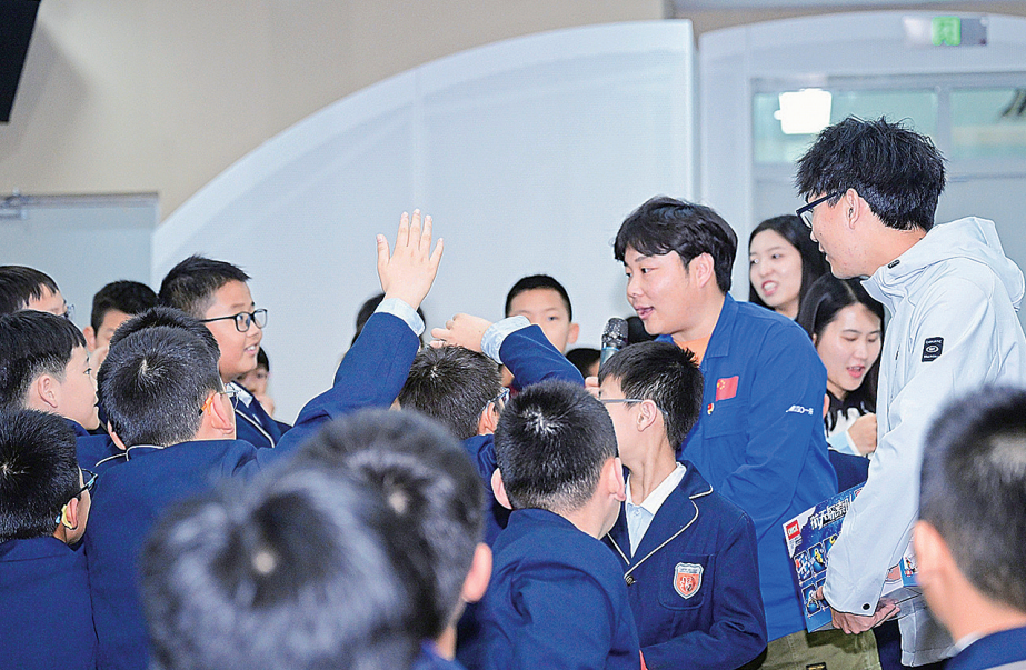 图为青年科技工作者在和孩子们互动。曹莎 摄