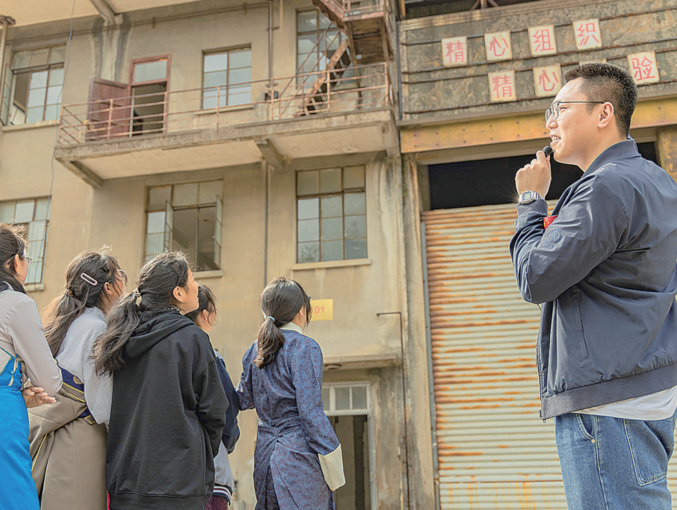 图为学生代表来到国家工业遗产——湖州七〇一三液体火箭发动机试车台参观。刘开伟 摄