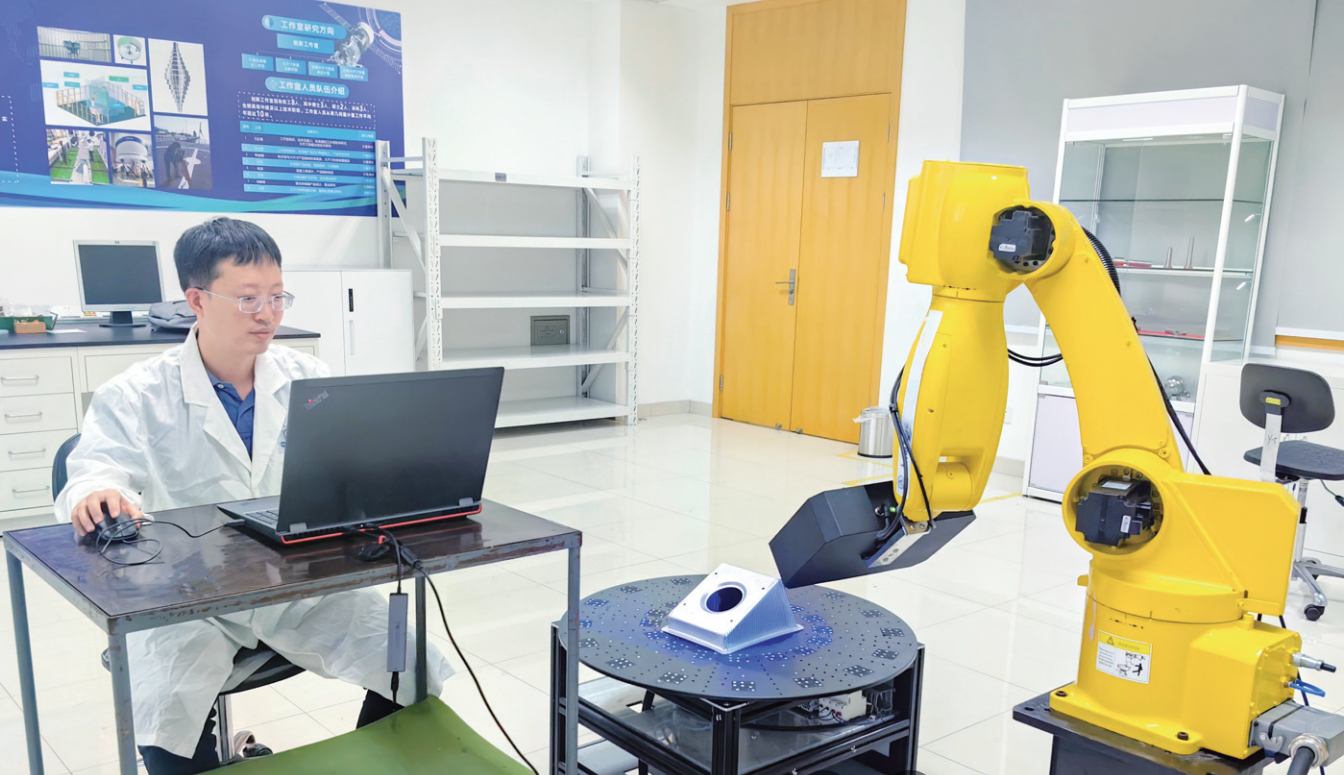此前,运载火箭钣金零件的质量控制还停留在人工检测阶段,存在效率低、准确性不高、依赖经验等问题。该系统运用先进的面结构光扫描测量原理,有机集成工业机器人、3D相机、转台、核查标准器和总控软件,利用自主开发的3D点云数据处理算法,可实现钣金件孔径、孔距、外形尺寸和平面度等参数的“一键”式快速数字化测量,并自动生成检测报告。系统测量精度优于0.1毫米,满足检测要求的同时,检测效率相比传统手段提升3倍。